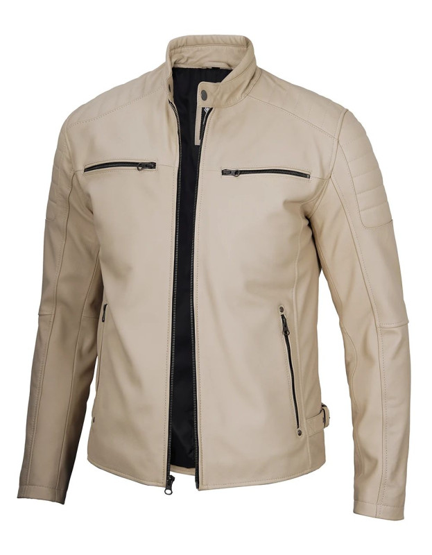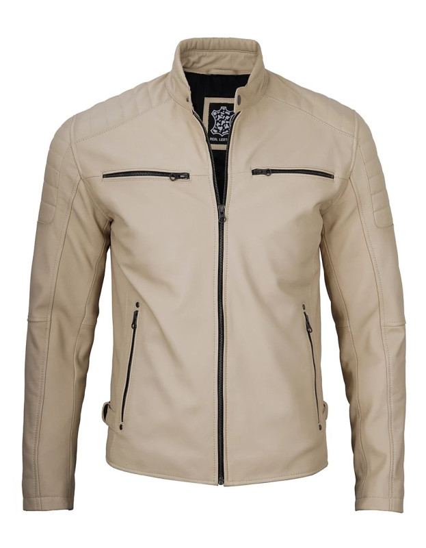 Tags: Beige Men Cafe Racer Real Leather Jacket, biker leather jacket, Mens Leather Jacket